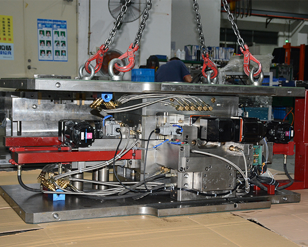 BMW end cap 1000T大型雙色模具,前模頂出需要開模同時(shí)沿分型面頂出,合模需要分型面推前模頂出系統(tǒng)回位,經(jīng)過我們工程團(tuán)隊(duì)前期跟客人提出的有效建議對產(chǎn)品的優(yōu)化,結(jié)果模具試模一次成功。